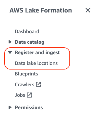 1. Navigate to Data Lake Locations and then from Register and ingest section in the lake formation console