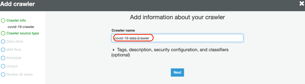3. Provide a Crawler Name
