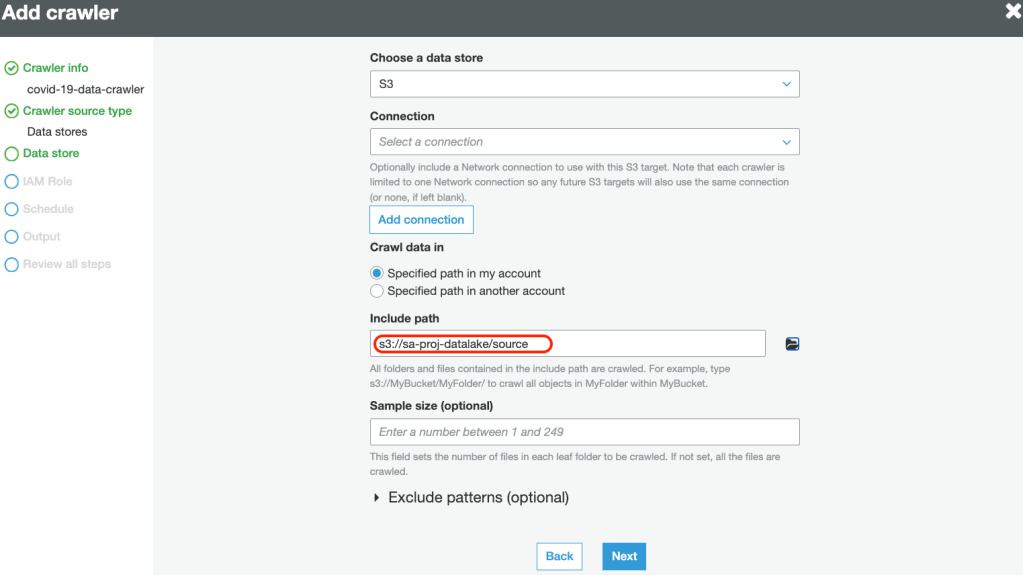 Note: I am using s3://sa-proj-datalake bucket and my IAM user sandeep.arora in my Personal AWS account for this entire walkthrough. Please update the placeholders if you intend to recreate the steps in your environment. The user and bucket has been removed after recording the steps.