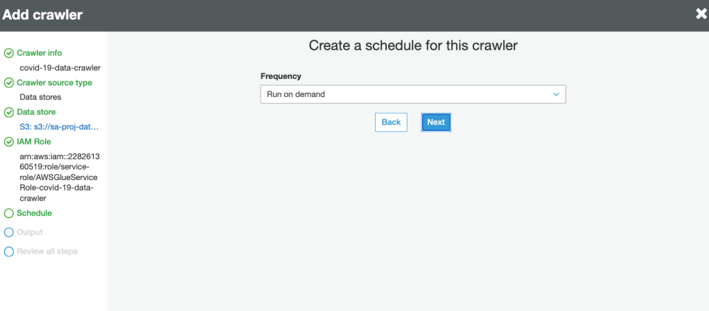 7. Define Frequency for crawler to run