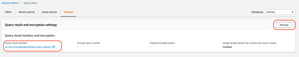 1. Navigate to AWS Athena and go settings and update the query result location path for S3 as shown below,