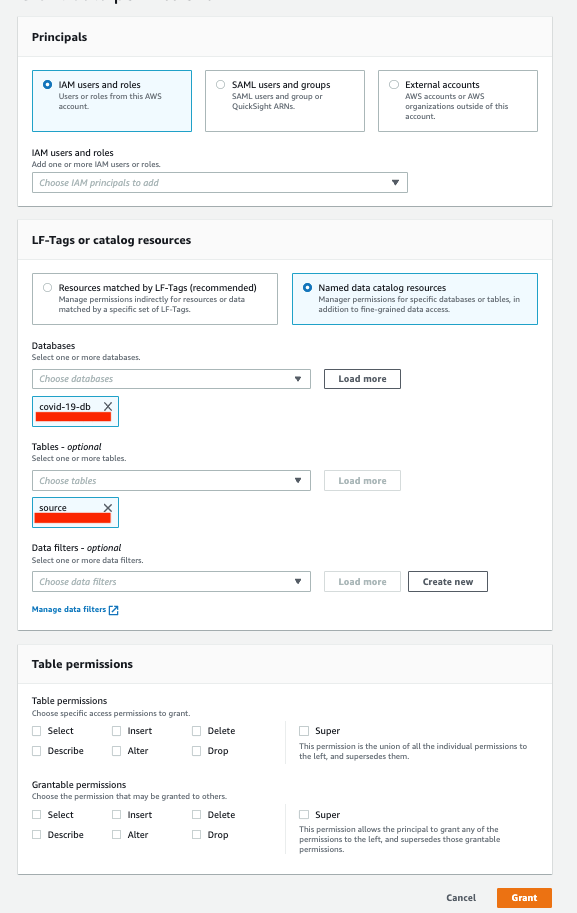Stage 3 – Grant permissions to data lake resources and underlying data